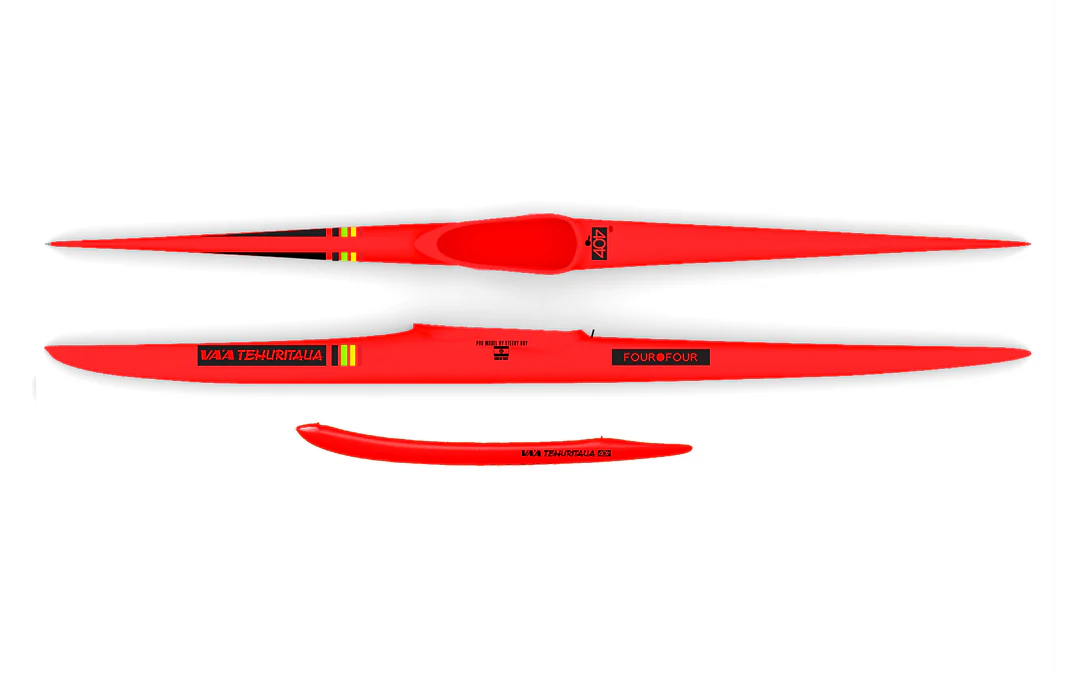 Passionate about riding and in love with the sea, Marc TEHURITAUA started designing “carbon” va’a in the 2000s. Marc met “Steeve TEIHOTAATA” called the “E.T ”, a renowned paddler in this discipline. Together, they worked tirelessly to perfect the Tahitian va’a design. Steeve and Marc (TEHURITAUA VA’A) have joined forces with Danny Ching (FOUROFOUR) to drastically improve the quality and availability of the Va’a, so that they may share this incredible design to the rest of the world. The STEEVY BOY V1 now has upgraded features like, an adjustable foot brace and foot strap, a foot pump bailing system, new precision adjustable rigging system and a lighter, stiffer and more durable carbon composite construction. Combining heritage and innovation, TEHURITAUA VA’A and FOUROFOUR would like to bring you the new and improved STEEVY BOY PRO MODEL